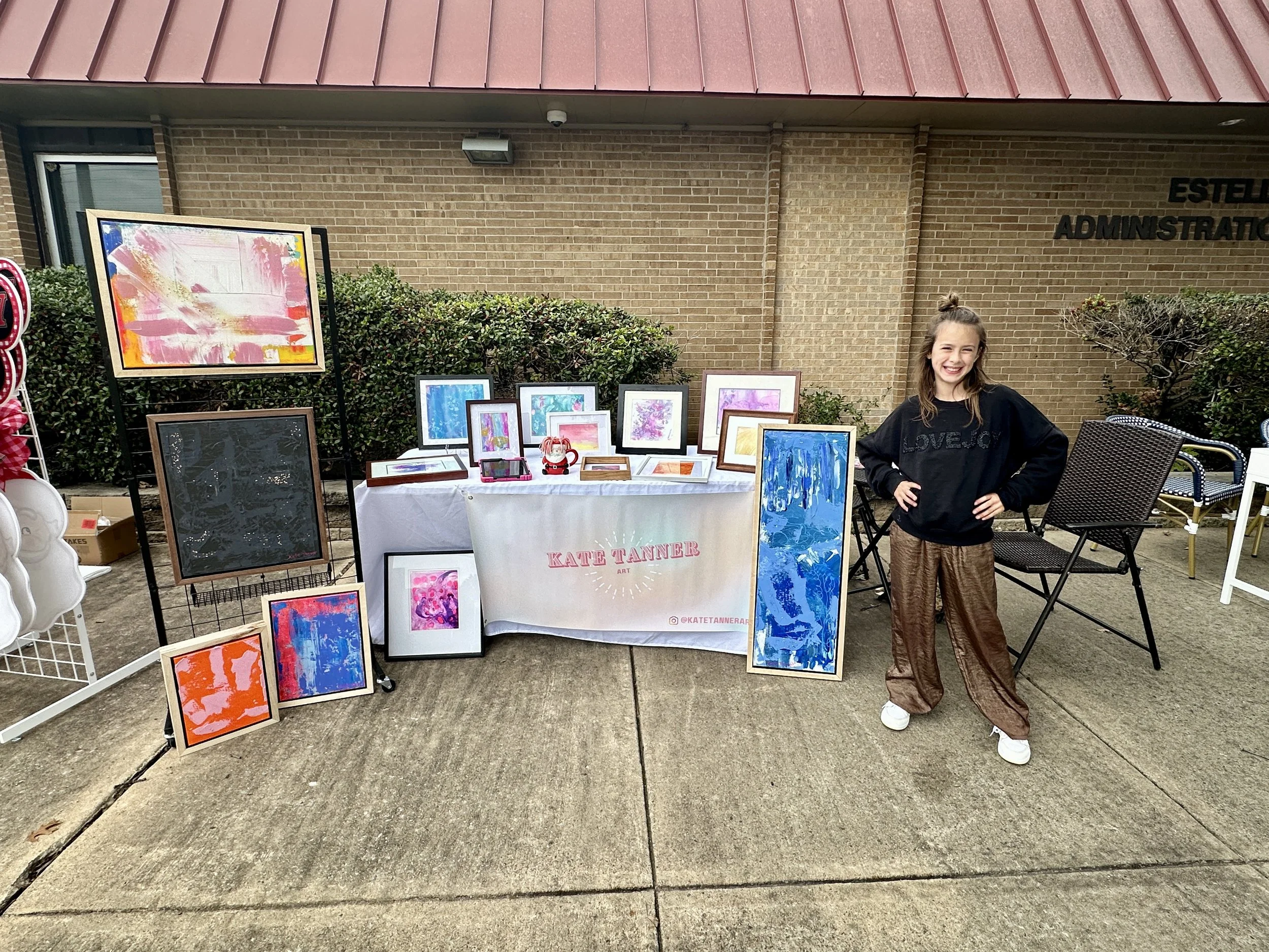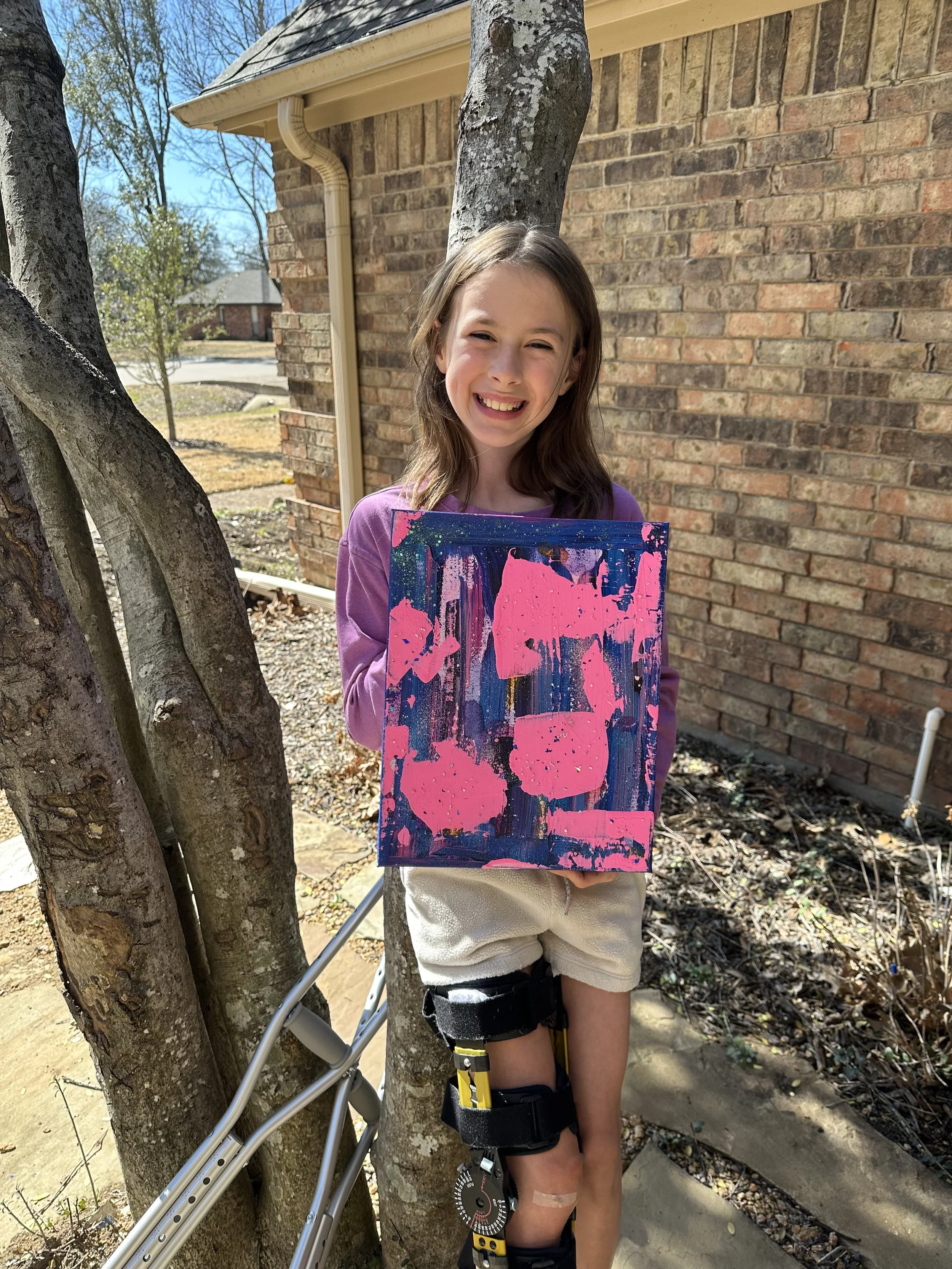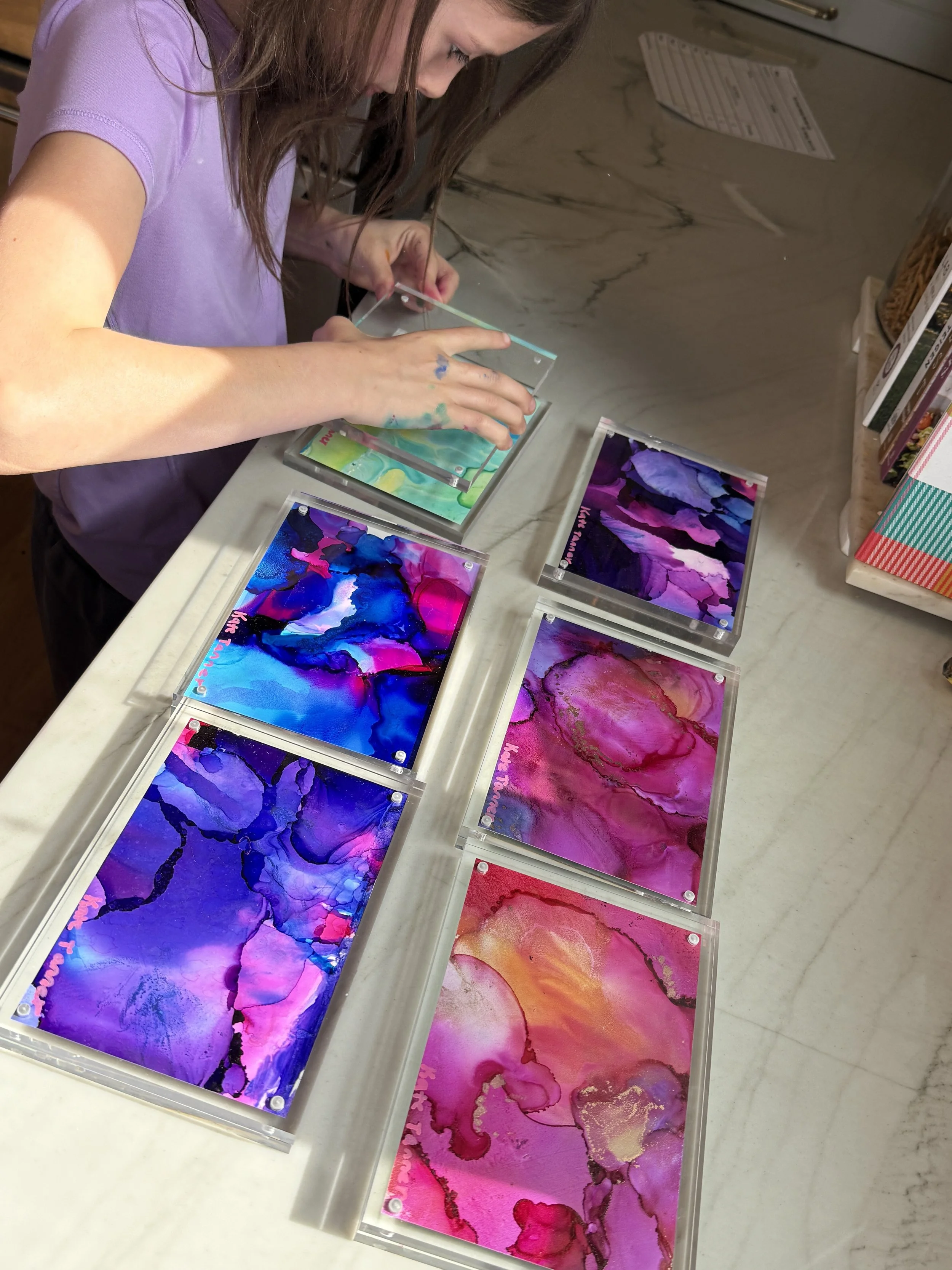 Kate has been painting and creating art all her life, a whole 9 years. She loves seeing the different colors next to each other and, of course, the glitter and crushed glass to make it sparkle. Outside of art, she plays everything she can- softball, lacrosse, cheer and tennis!